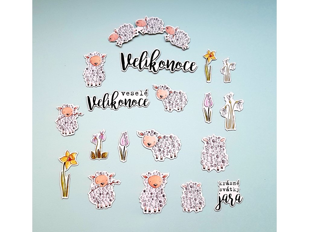 Velikost A5 (14,8 x 21 cm); 19 ks; největší ovečka je velká 3 x 4,5 cm.