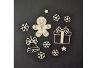 Kartička 9 x 11,3 cm; perníček je velký 4,8 x 5 cm; zvonek 3,2 x 4,3 cm; dárek 4,4 x 4,5 cm; vyřezáno z kartonu o šíři 1,5 mm.