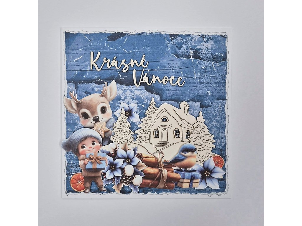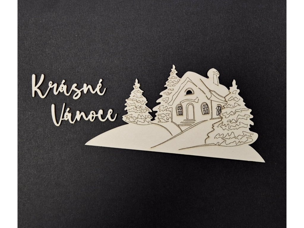 Motiv domku je velký 13 x 6,3 cm + nápis Krásné Vánoce 5,2 x 1,6 + 4,7 x 1,6 cm. Vyřezáno z kartonu o šíři 1,5 mm. + DÁREK 2x podklad 15 x 15 cm + vystřihovací arch :-)