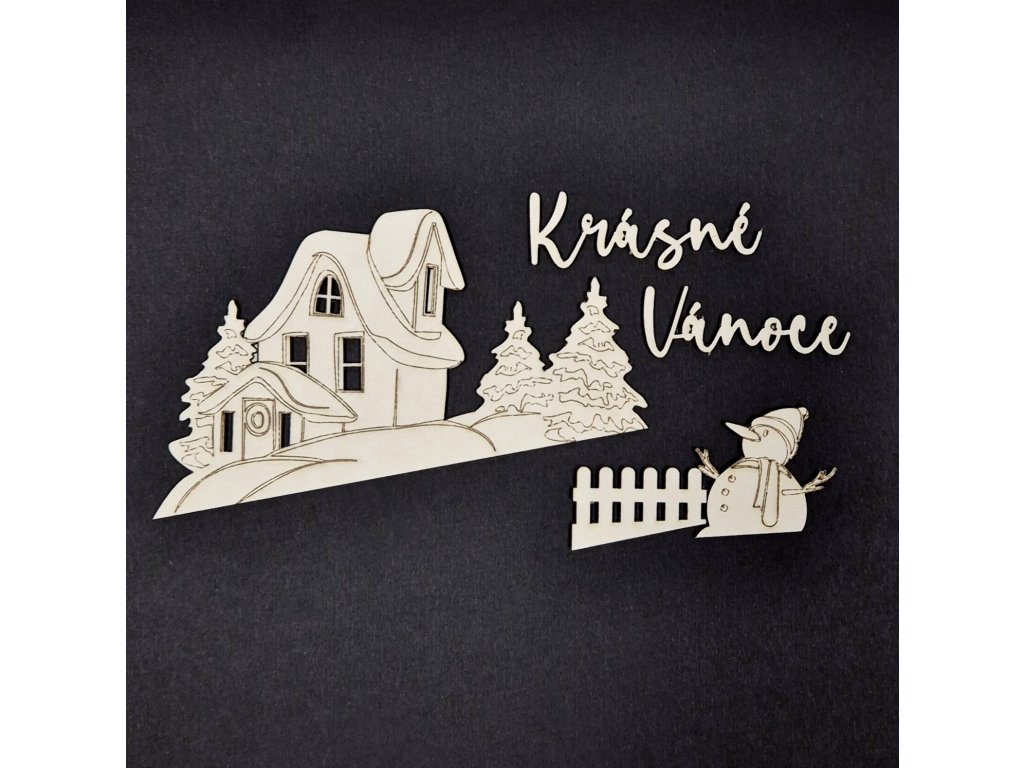 Hurá Papír - HL0014 / krajina s domem a sněhulákem, ZIMA + nápis - kartonové motivy
