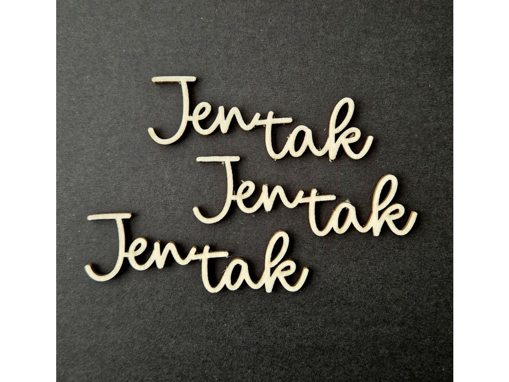 3ks; "JEN TAK" je velké 6,1 x 2,1 cm, vyřezáno z kartonu o šíři 1,5 mm.