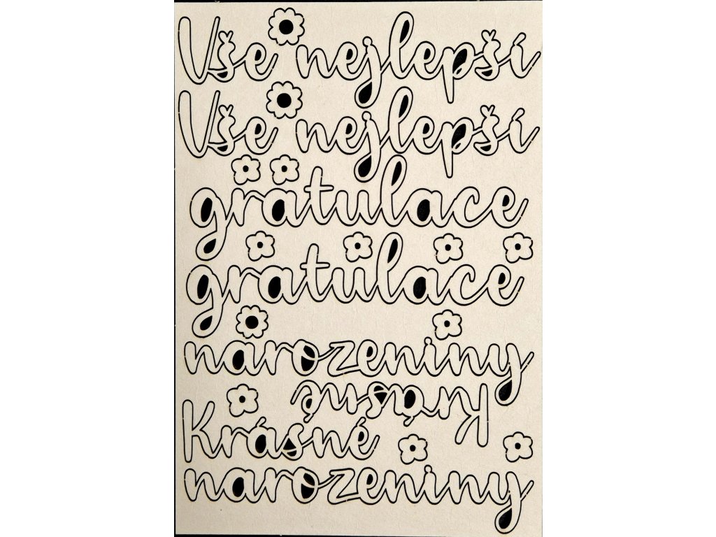 Arch 9,5 x 13,8, 6 nápisů + kytky. Z archu motivy lehce "vyloupete".