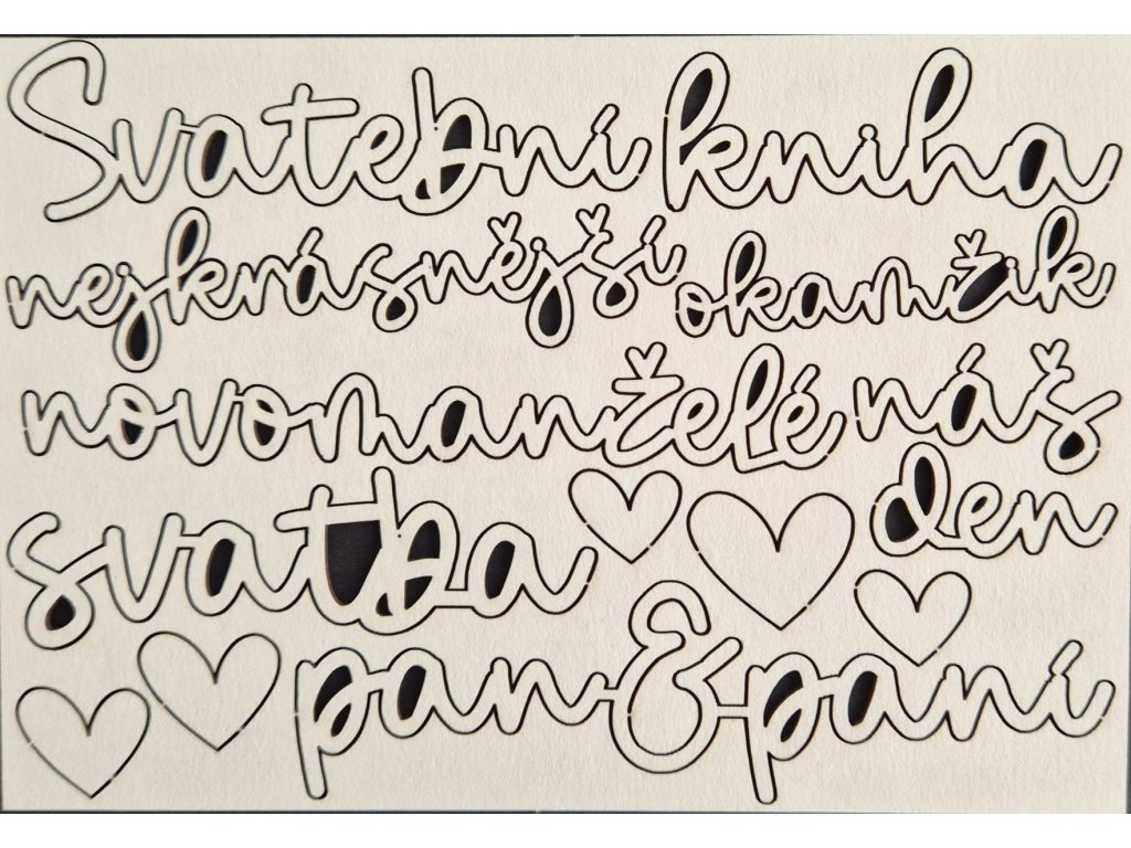- slovo "Svatební kniha" je velké 7,8 x 2,2 a 5,5 x 2 cm