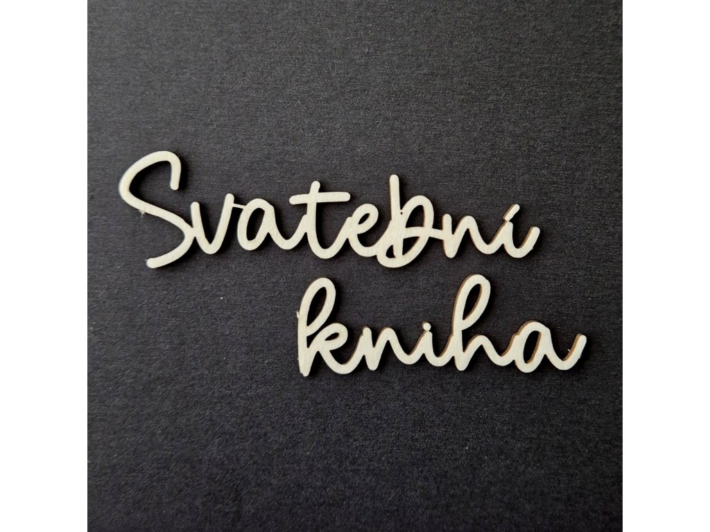 Nápis "Svatební kniha" je velký 7,8 x 2,2 a 5,5 x 2 cm; vyřezáno z kartonu o šíři 1,5 mm.