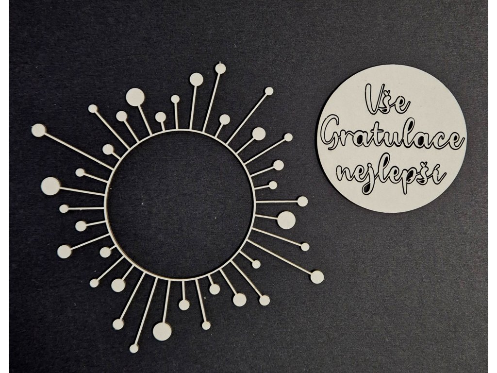 "Věnec" je velký 11 x 11 cm + nápisy "Gratulace" je velká 6 x 1,5 cm.