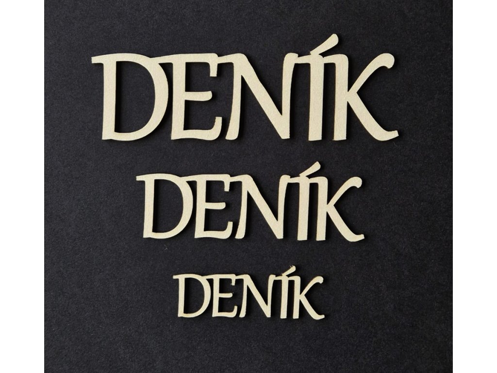 "DENÍK" je velký 9 x 3,1 cm, vyřezáno z kartonu o šíři 1,5 mm.