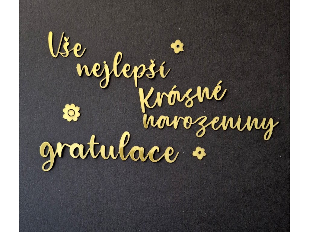 - Nápis 2x Krásné narozeniny je velký : 5,6 x 1,6 cm + 8,8 x 1,6 cm.