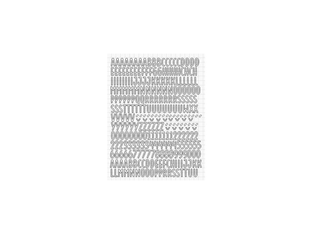 Velikost A4 ( 21 x 29,8 cm). Neprůhledné samolepky. Písmenka jsou vysoká 1,8 cm.