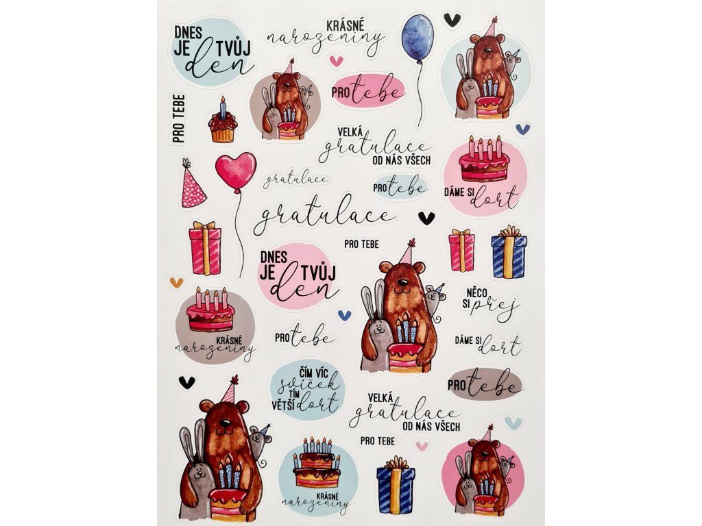 Hurá Papír - A4 / KRÁSNÉ NAROZENINY, kol / 2023 - průhledné samolepky