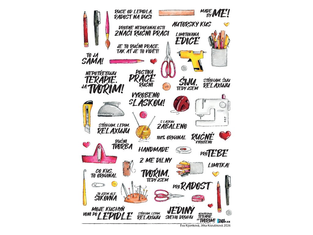 Hurá Papír - A5 / NEPOTŘEBUJI TERAPIE, JÁ TVOŘÍM 2026 - neprůhledné české samolepky