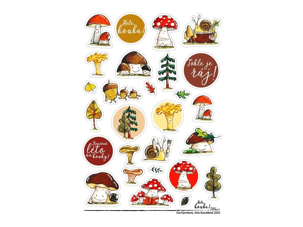 Hurá Papír - A5 / HELE, HOUBA!, PODZIM 2025, kolečka - české samolepky, bílý podklad