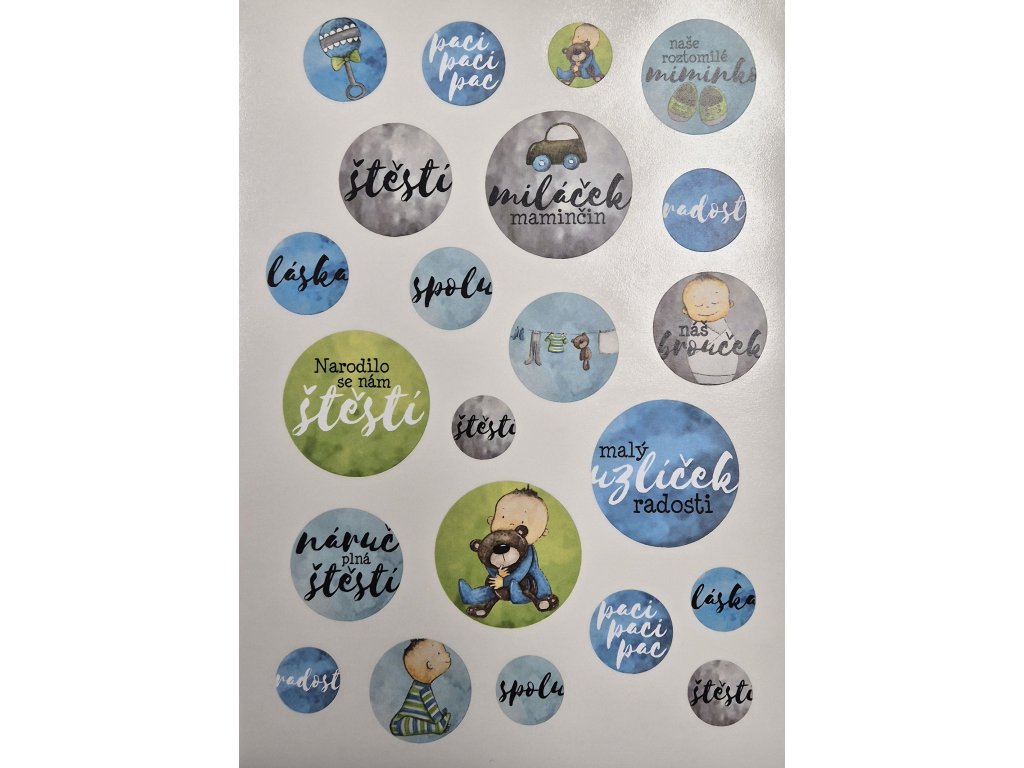 2.jakost... Hurá Papír - samolepky A5 / VÍTEJ NA SVĚTĚ! / KLUK - samolepící kolečka