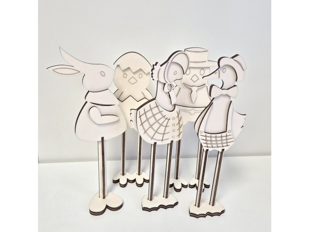 5 ks; velikonoční zvířátka jsou vysoká cca 21,5 cm. Vyřezali jsme je z topolové překližky, skvělé na vybarvování s dětmi.