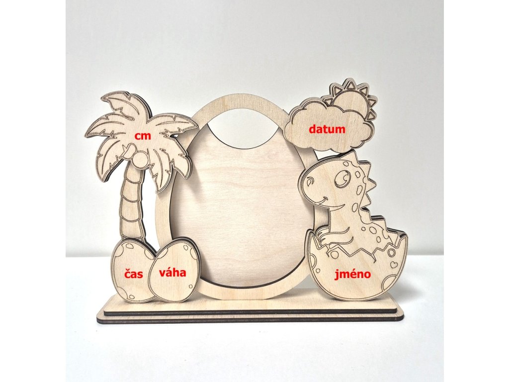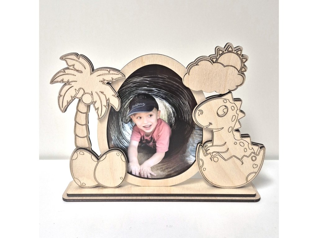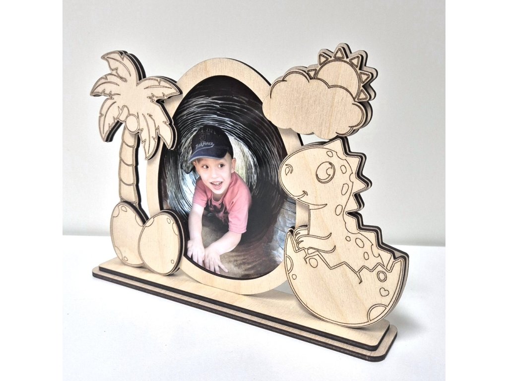 Hurá Papír - dětský dřevěný rámeček s dinosaurem - březová překližka, stavebnice