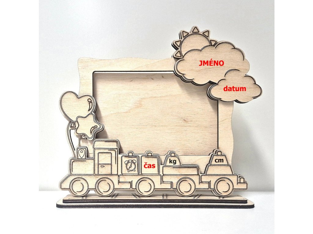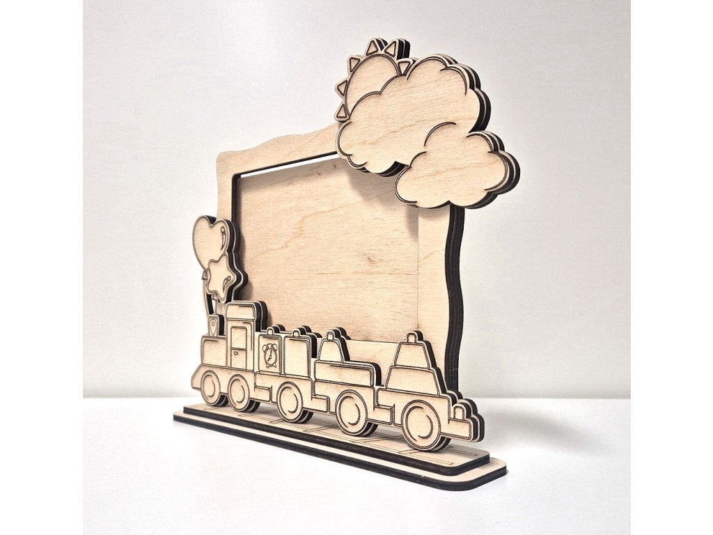 Hurá Papír - dětský dřevěný rámeček s vláčkem - březová překližka, stavebnice