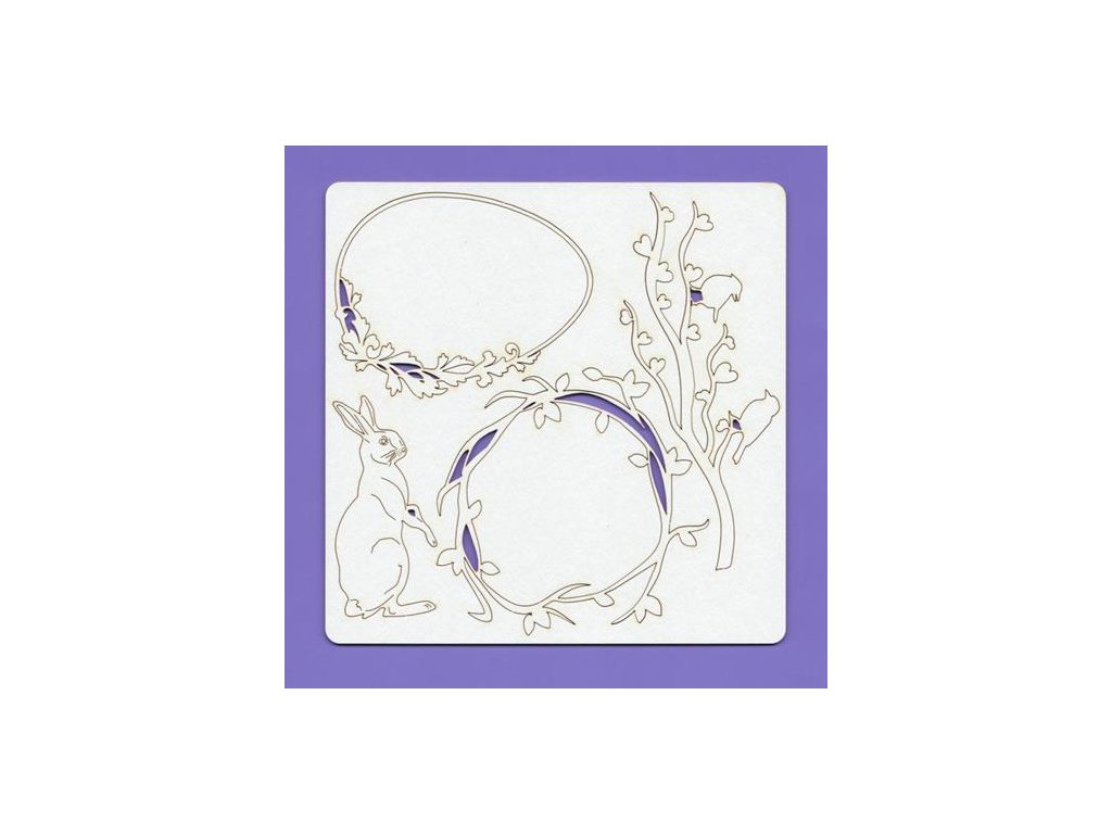 Arch 14,5 x 14,5 cm; zajíc je velký 3 x 7 cm.