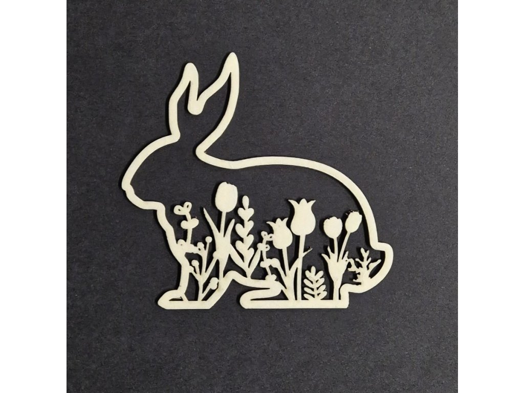 1 ks; zajíc je velký 7,4 x 7 cm. Výsek je řezaný laserem z 1,5 mm lepenky, obě strany jsou světlé.