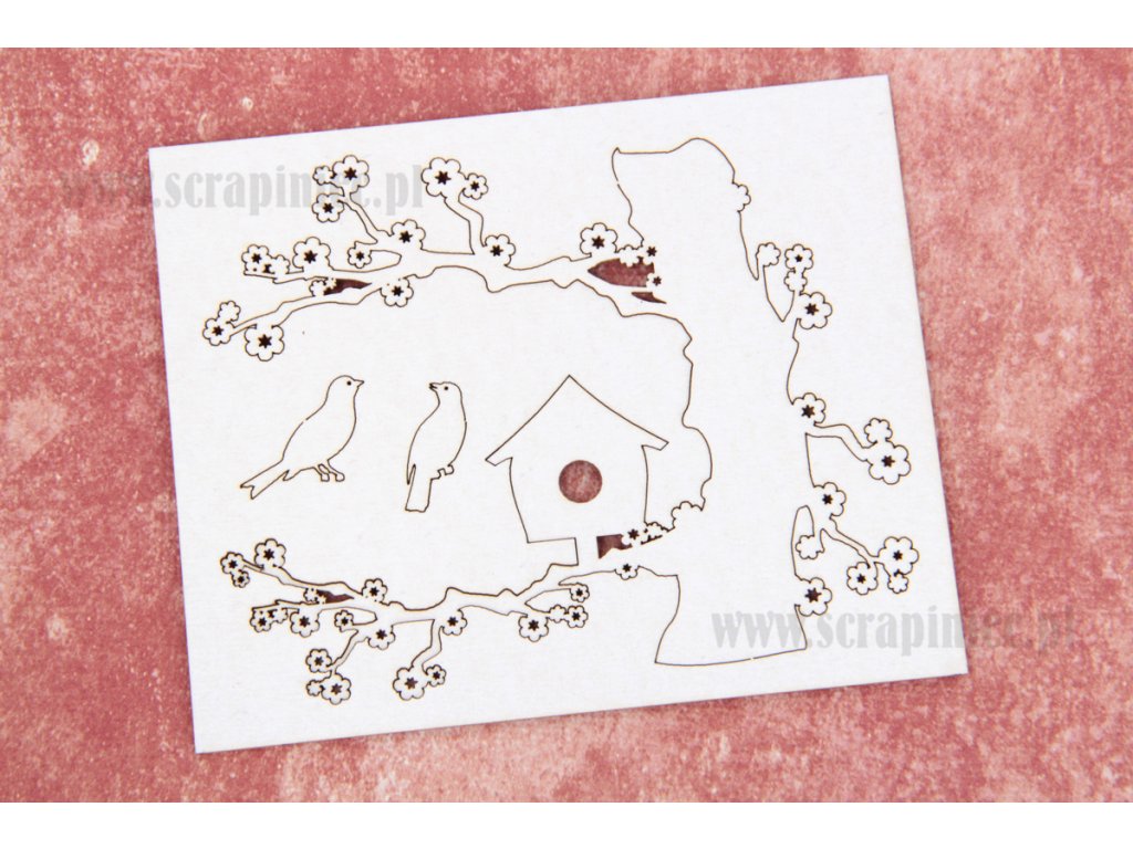 Scrapiniec - 609 / 2707 - kmen, budka, ptáci - kartonový výsek