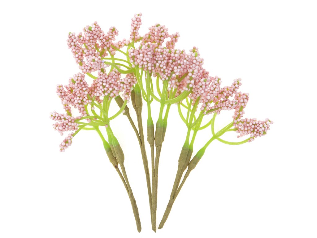 4 ks; polní květy na větvičce s šeříkovými kuličkami, délka 15,5 cm.