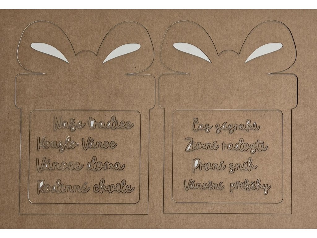 Hurá Papír - laserem "dárky" a vánoční texty na A4 - kraft čtvrtka 250 gr/m2