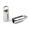 1x stříbrná koncovka na střapce; průměr 7 mm; délka 2 xm + velké očko o průměru 8 mm, + šroubek na zajištění.