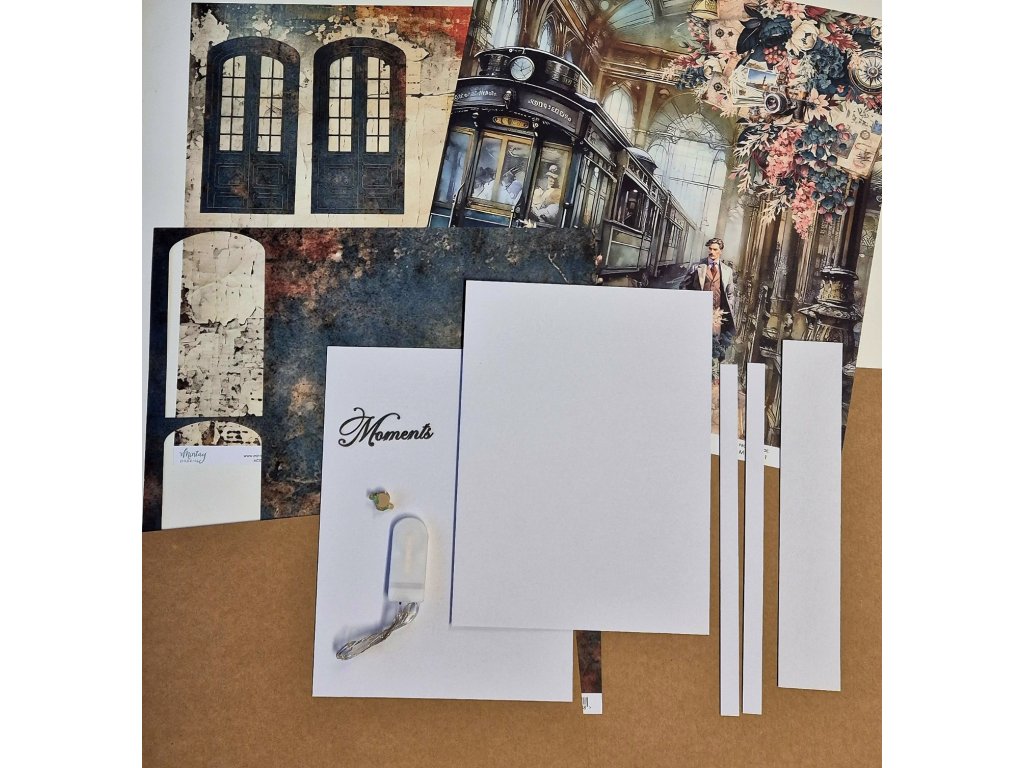 - 1x čtvrtka Mintay / sada TRAVELLER 05 - z této čtvrtky vyřízneme laserem 1 pár dveří + nápis Moments