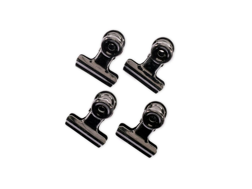 4 ks; černé kancelářské sponky, velikost cca 2,2 x 2,5 cm.