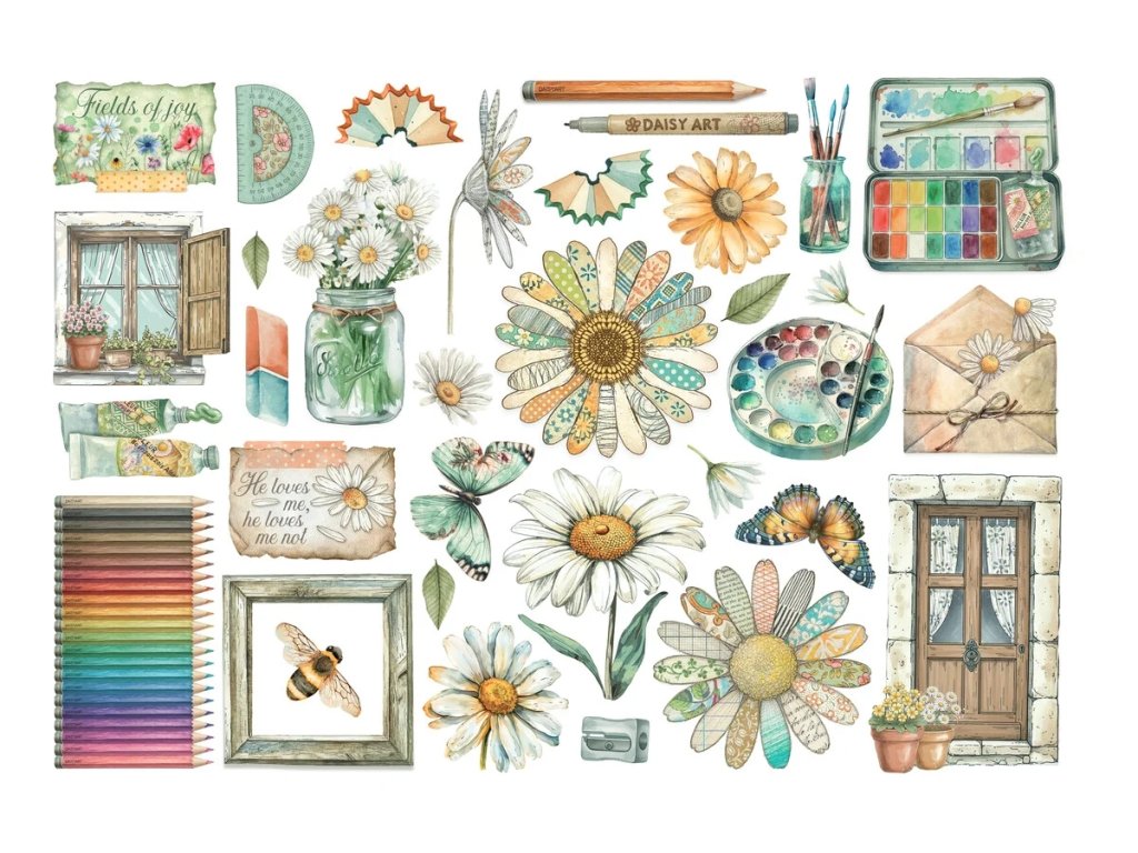 Papírové ephemera výřezy z kolekce Daisy Art od značky Stamperia jsou perfektním doplňkem pro jemné, květinové a romantické projekty. Obsahují pečlivě vybrané motivy květin, dekorativních detailů a drobných ilustrací v jednotném stylu kolekce.