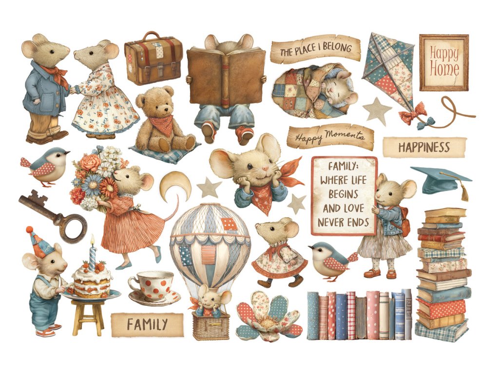 Stamperia - FAMILY - perleťové samolepící papírové obrázky