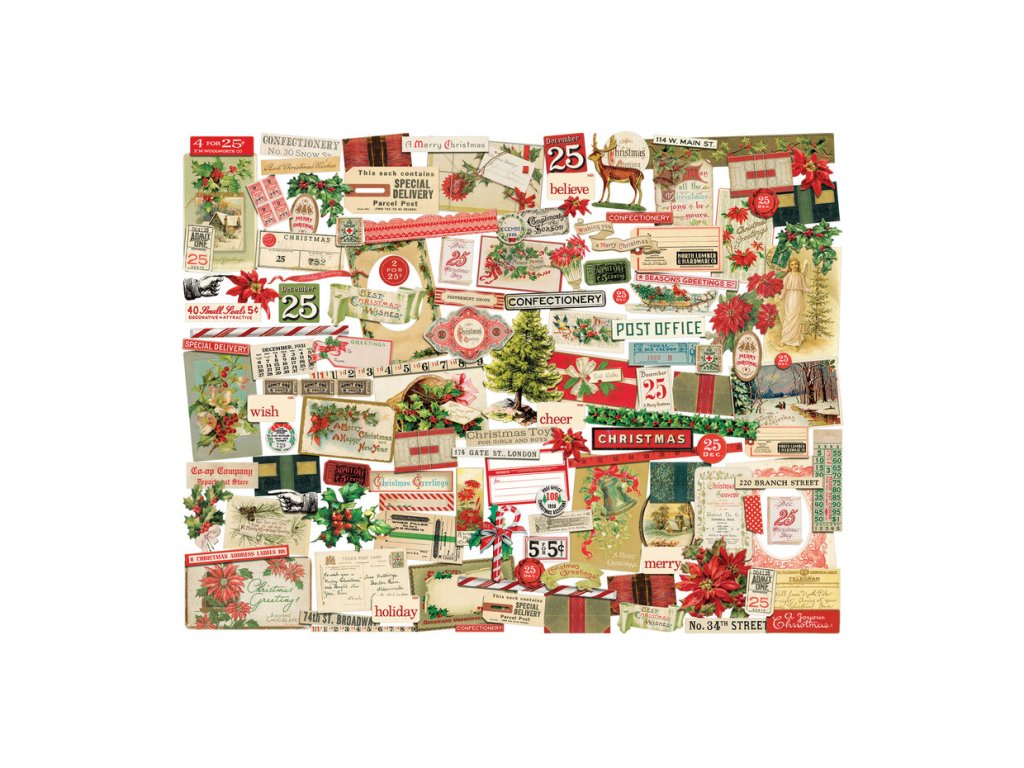 Sada vánočních papírových dekorací z kolekce Tim Holtz Idea-ology obsahuje množství drobných vintage motivů – štítky, obrázky, nápisy, zimní ilustrace a starobylé vánoční detaily. Ideální doplněk pro scrapbooking, cardmaking, journaling a mixed media projekty, kterým dodá autentický retro vzhled typický pro tvorbu Tima Holtze.
