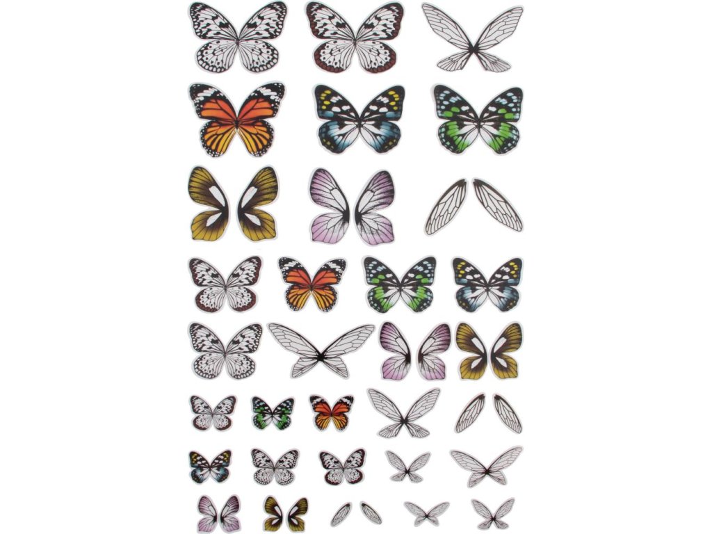 72 ks; největší křídla jsou velká 8,5 x 5,8. Natištěny na průhledné fólii.