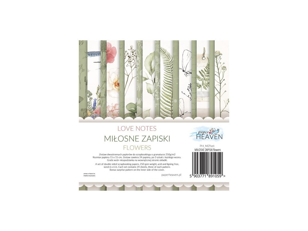 Paper HEAVEN - LOVE NOTES / MILOSTNE ZAPISKY - 6" kompletní scrapbooková sada na vystřihování