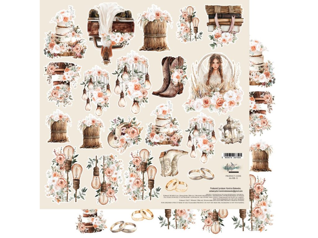 Alchemy of Art - ROMANTIC BOHO / extra – 12" scrapbooková vystřihovací čtvrtka