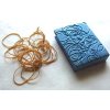 Postup... blok nahřejte po dobu 30 sekund horkovzdušnou pistolí. Nahřátý blok položte na předem nachystaný podklad (např. knoflíky, poházená párátka, kartonová písmenka...) a přitlačte po dobu cca 15-20 sekund.... a můžete běžným způsobem razítkovat.