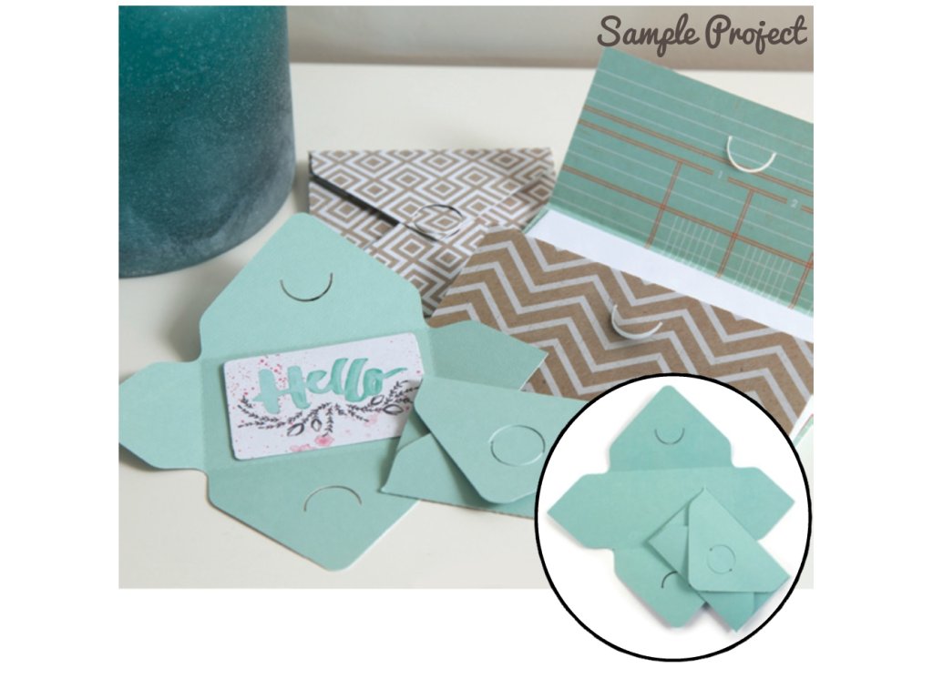 Podložka na vyseknutí zavírání obálek. Podložka je velká 16 x 6 cm.