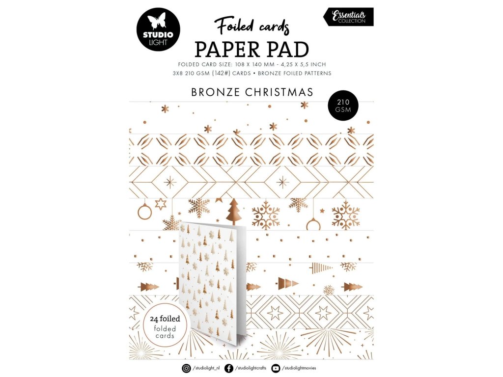 Studio Light - Essentials Foiled Cards Bronze patterns - 24 předtištěných přáníček A6