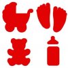 4x mini dětské raznice; motivy jsou velké... kočárek 1,4 x 1,4 cm; dudlík 1 x 0,4 cm.