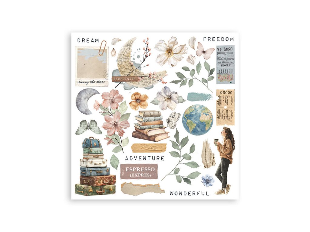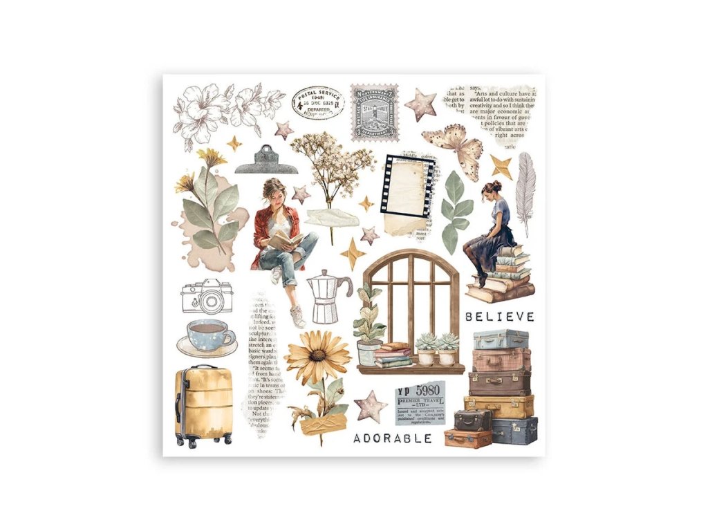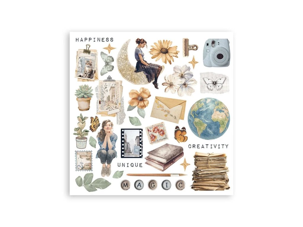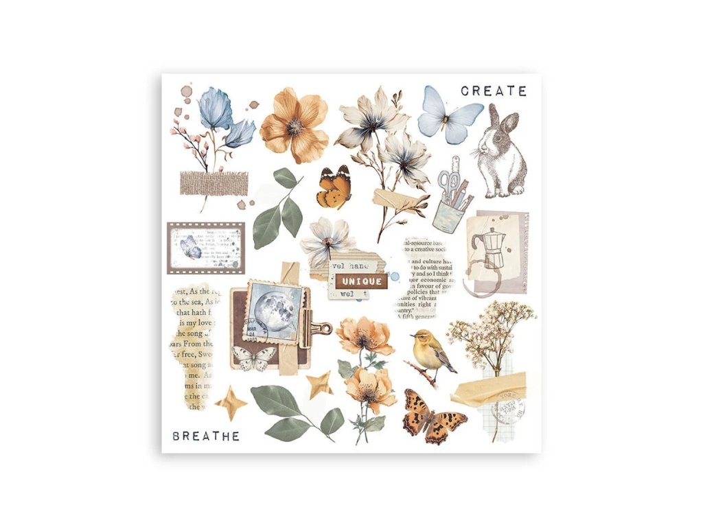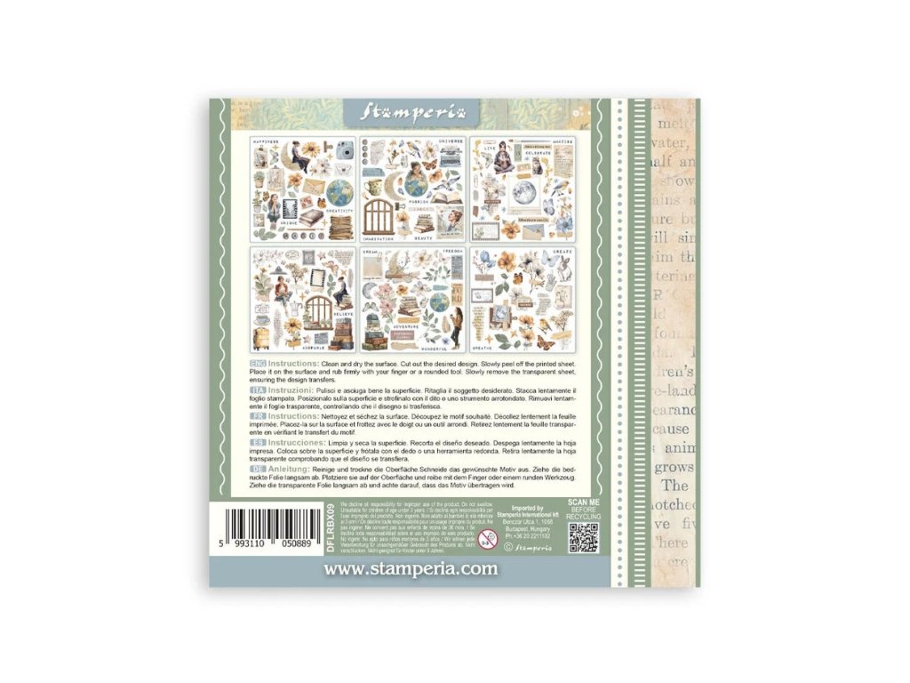 6 archů 15,5 x 15,5 cm; jednotlivé obrázky na vystřihování a použití na projektu. Motiv se přiloží na povrch a třením se přenese.