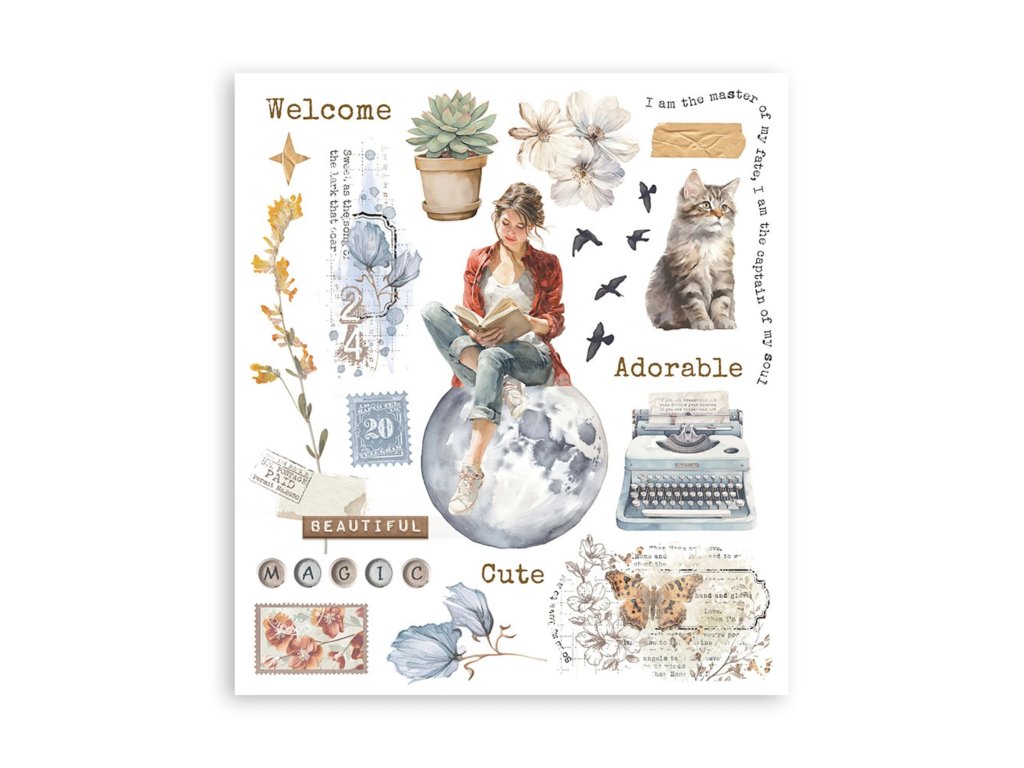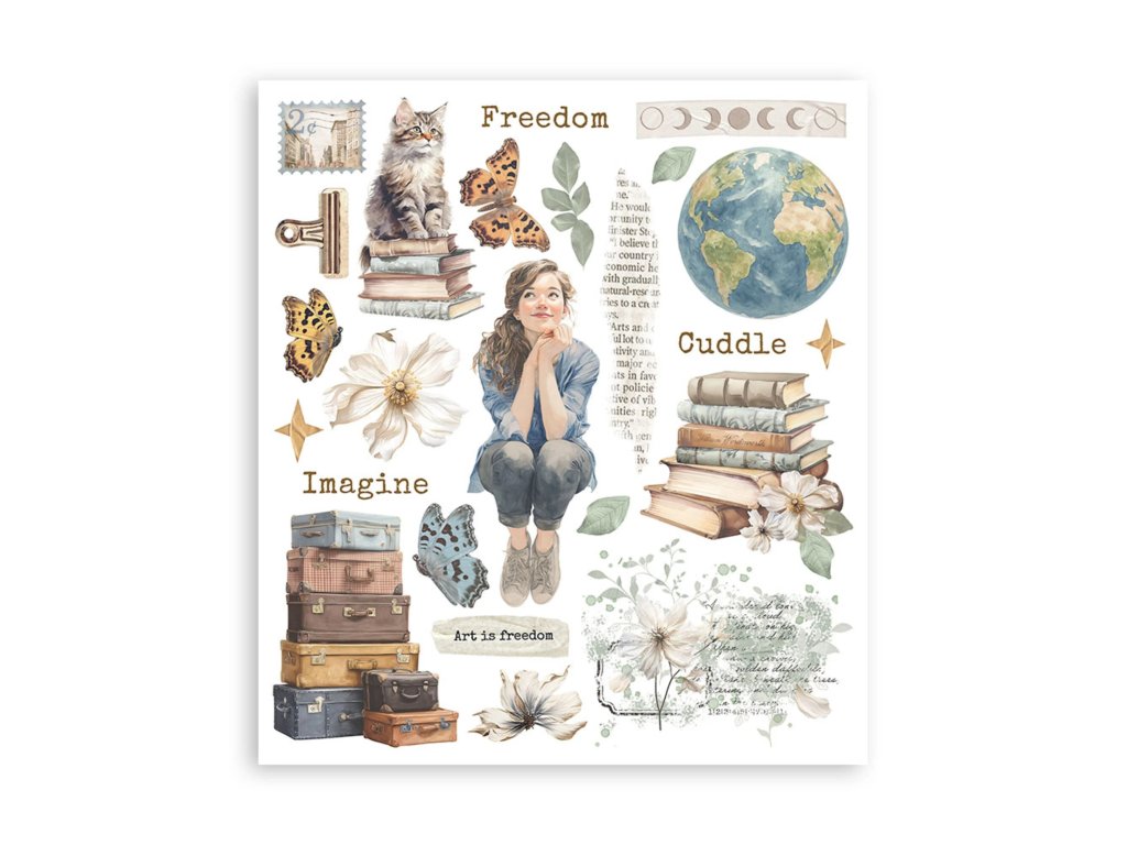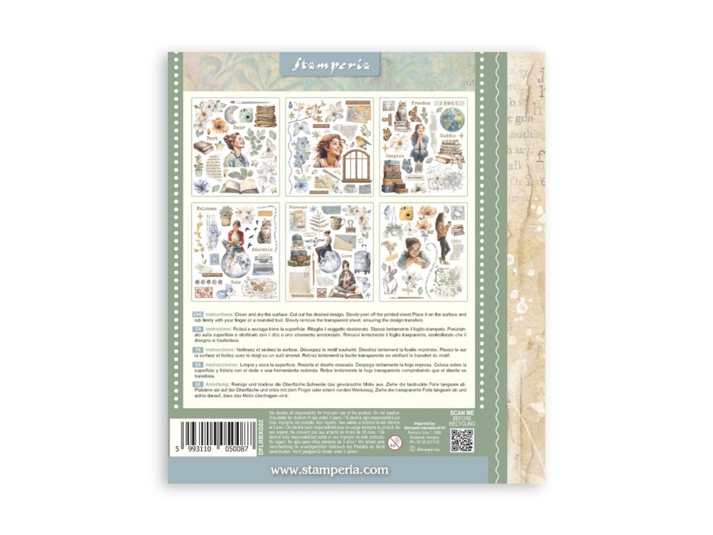 6 archů 20,5 x 23 cm; jednotlivé obrázky na vystřihování a použití na projektu. Motiv se přiloží na povrch a třením se přenese.