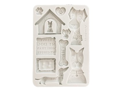 A5; 14,8 x 21 cm; velmi hluboká silikonová forma. Pes vpravo nahoře 5,3 x 9,8 cm. Silikonová forma vhodná na odlévání z pryskyřice, tvarování hlíny apod.