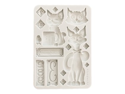 A5; 14,8 x 21 cm; velmi hluboká silikonová forma. Kočka vlevo dole 6,5 x 14,8 cm. Silikonová forma vhodná na odlévání z pryskyřice, tvarování hlíny apod.
