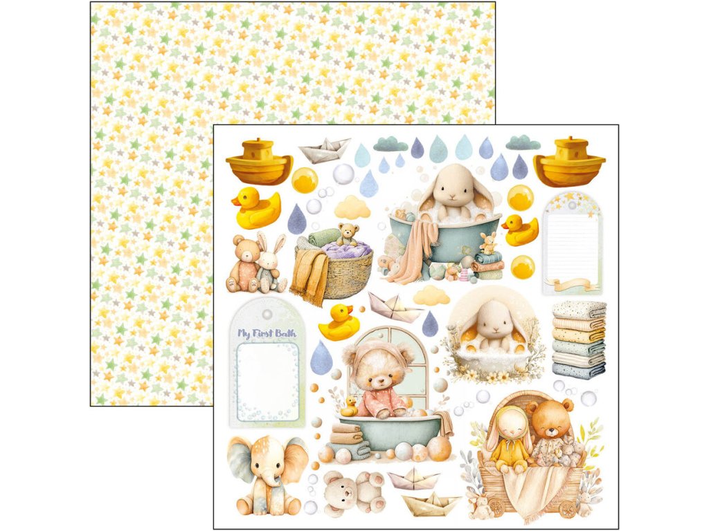 12 ks; 30,5 x 30,5 cm; oboustranný potisk, gramáž 190gsm. Motivy jak na pozadí, tak obrázky k vystřižení.