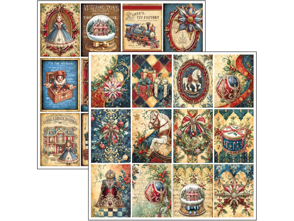 8 ks / 7 motivů; 30,5 x 30,5 cm; oboustranný potisk, gramáž 190gsm. Motivy jak na pozadí, tak obrázky k vystřižení.