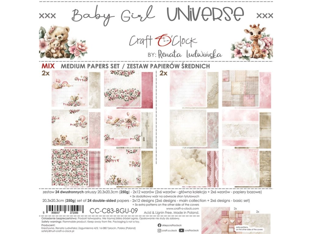 Craft o´ clock - Baby Girl Universe / MIX - 8" scrapbooková sada čtvrtek