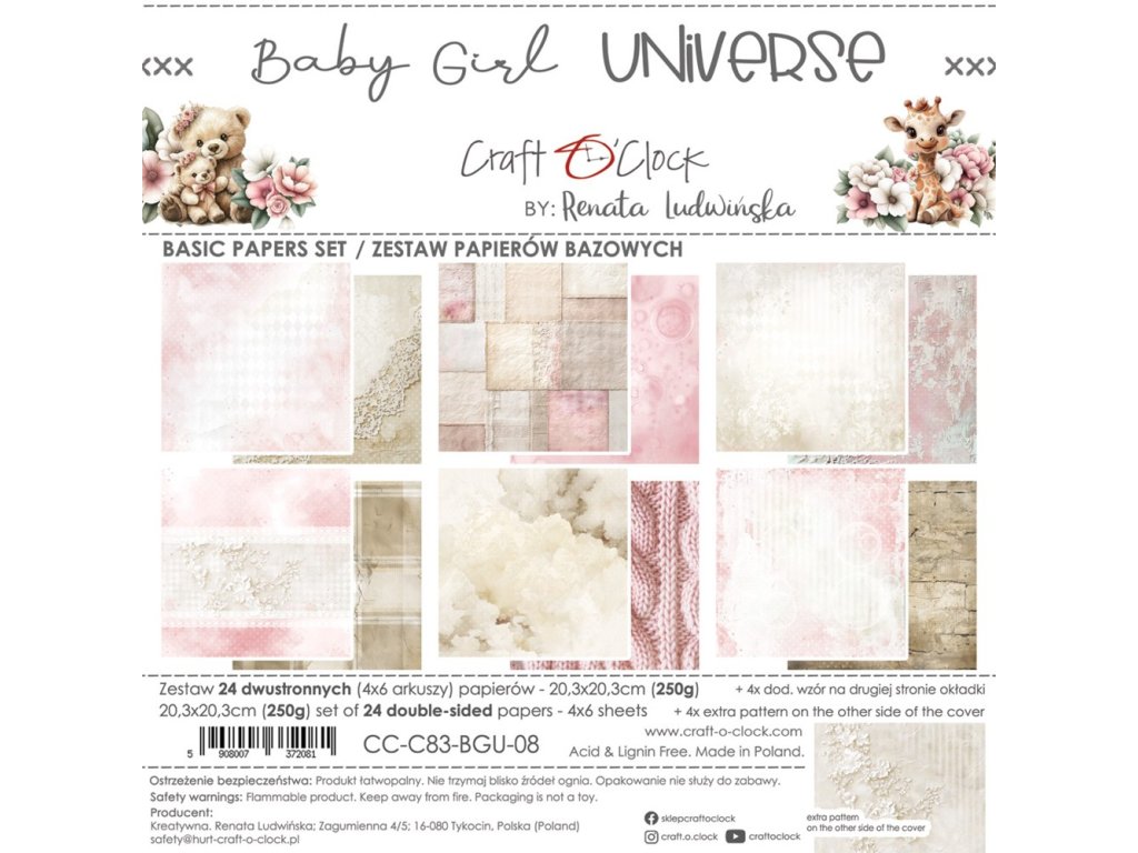 Craft o´ clock - Baby Girl Universe / pozadí - 8" scrapbooková sada čtvrtek