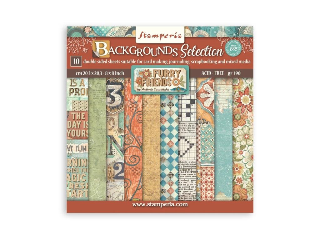 Stamperia - Furry Friends / podkladové čtvrtky - 8" scrapbooková sada