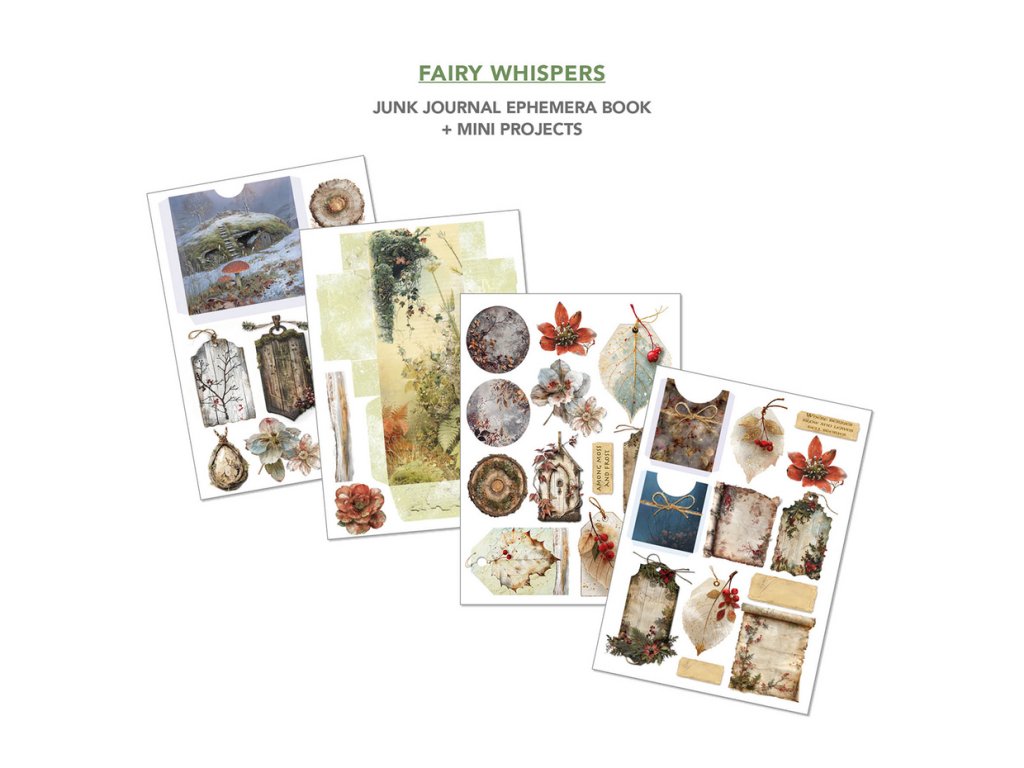 Vysoce kreativní ephemera kniha formátu A4 plná detailních výřezů, štítků, obrázků a průhledných stran – ideální pro junk journaling, scrapbooking, koláže i výrobu přáníček.