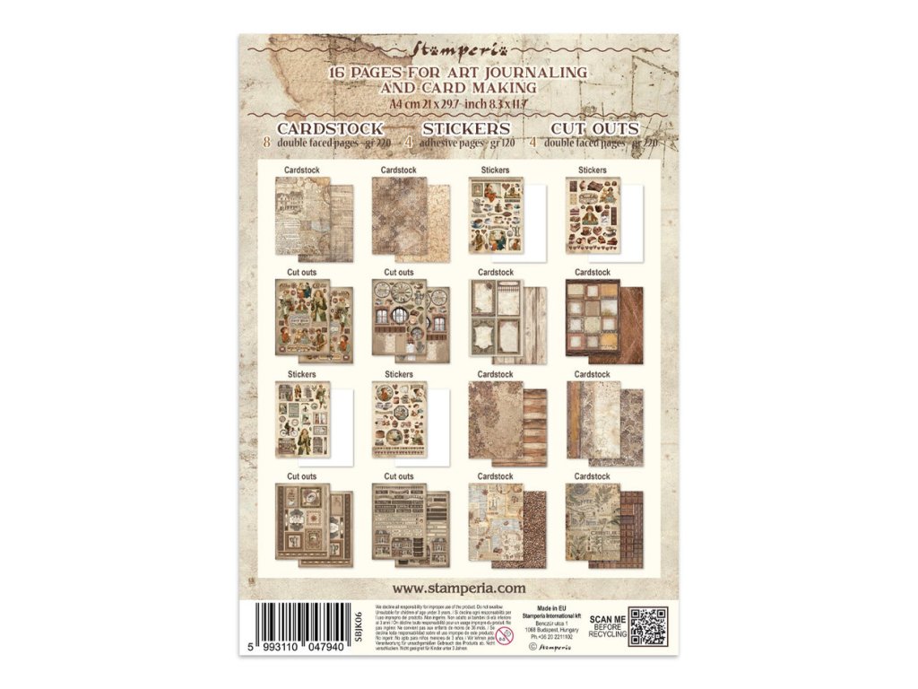 Stamperia - Coffee and Chocolate / Junk Journal - A4 / papírové obrázky, samolepky, motivy na vystřihování