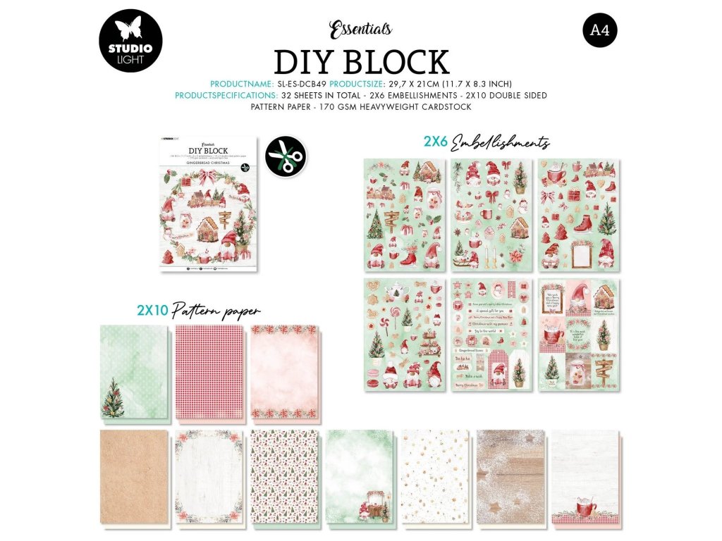 Studio Light - GINGERBREAD CHRISTMAS - A4 scrapbooková sada papírů + vystřihovací obrázky