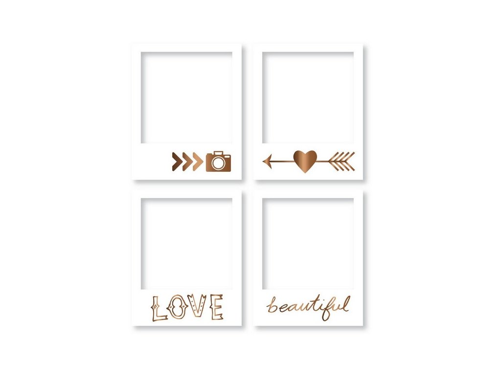 Kartonové rámečky, 4 ks; 8 x 10 cm; místo na fotografii 6,3 x 6,8 cm.